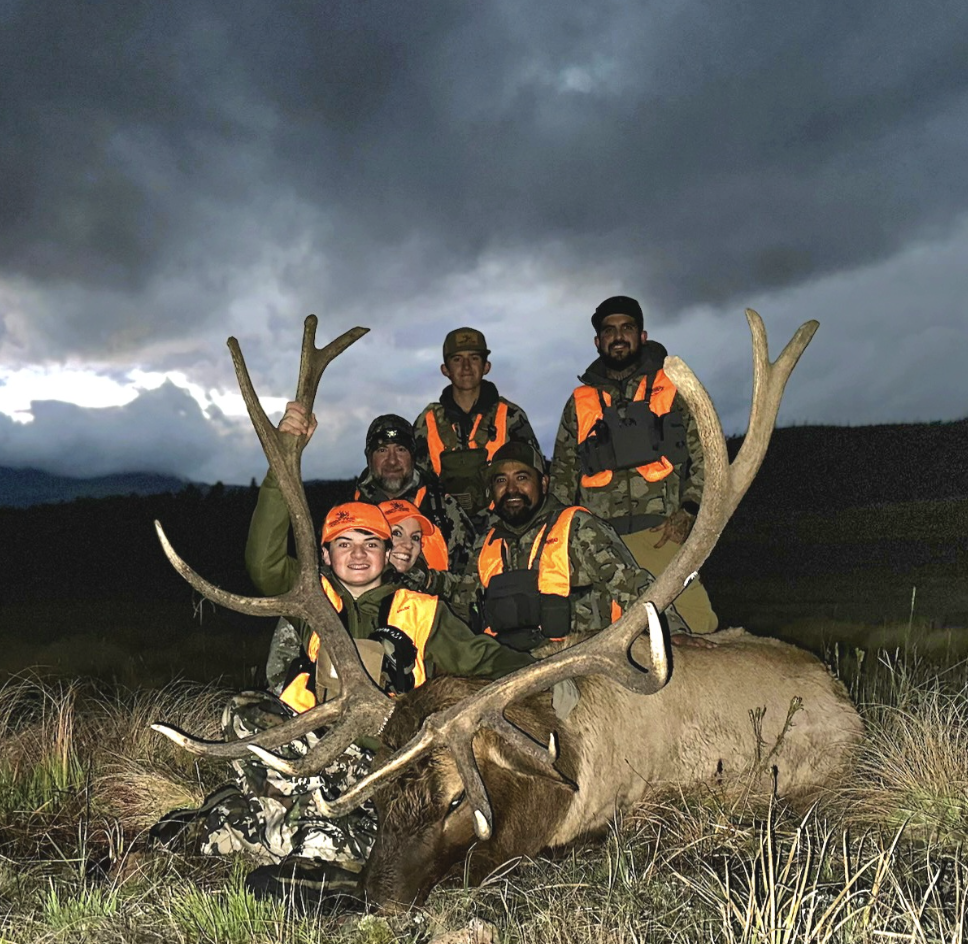On the crisp morning of October 11, hearts pounding with anticipation, they rolled through the handicap gate into the Valles Caldera. After hiking for two miles, they saw an impressive herd of three hundred elk, including thirty-five mature bulls. Their bugles echoed throughout the valley. On top of that, they had the entire area to themselves, transforming the hunt into an intimate experience. But the rain moved in, and they had to hike out and head back to camp to dry out. They headed back out later in the afternoon and spotted an eight-by-six bull. By far, it was the biggest bull out of the thirty-five mature bulls. Camdon positioned himself and waited for the bull to enter a clearing. He then made an impressive shot from 580 yards away, hitting both lungs and bringing the bull down instantly. Camdon and his mother were completely overwhelmed with emotion. Camdon had managed to harvest an 8x6 point mature bull, a true monarch from the Valles Caldera! Camdon and the hunting party field dressed the elk and hiked it out the two miles. The meat is currently being processed, and a taxidermy shoulder mount is being made.